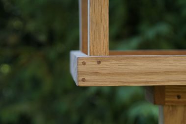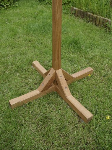 Joints are dowelled with oak, the glues are waterproof, and all screws are made of non-corroding stainless steel. The foot pads at the tips of the solid oak stand are tough weatherproof acrylic block.