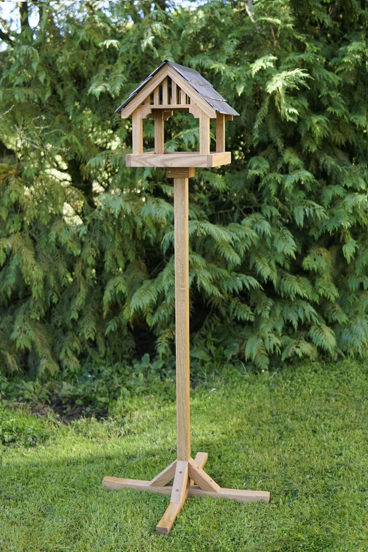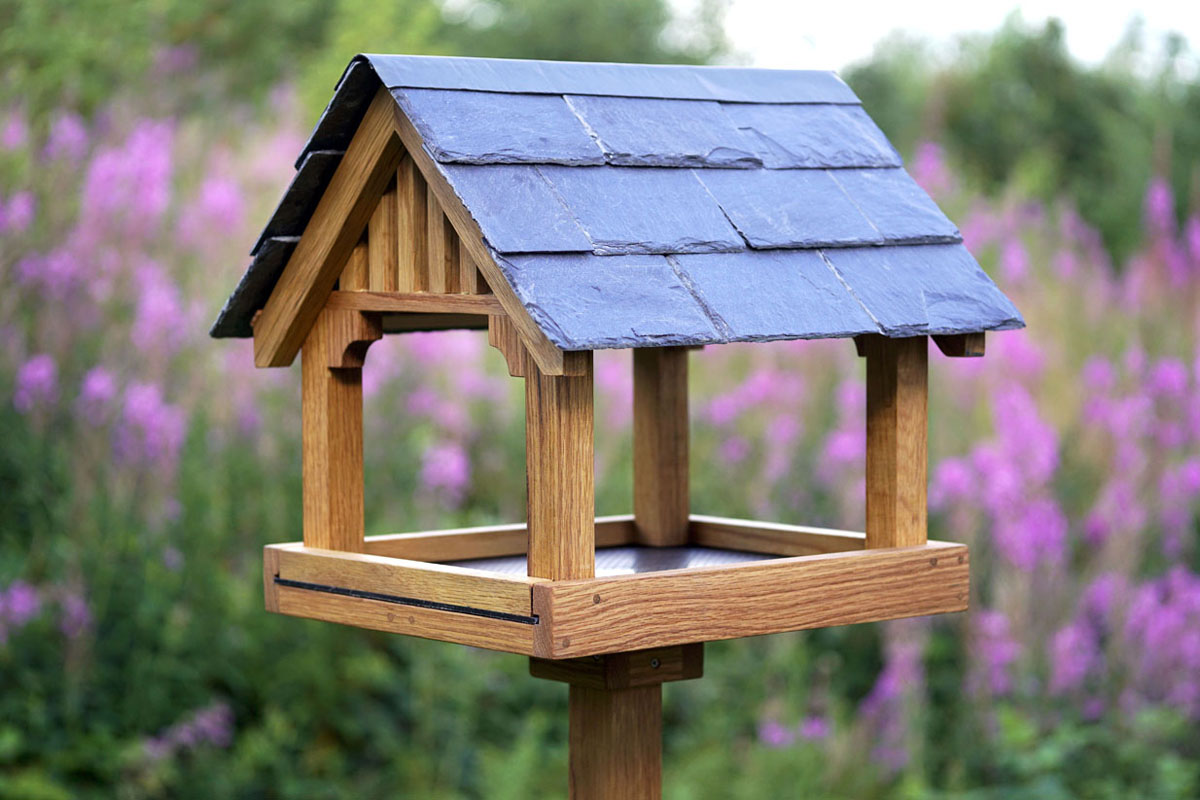 This hand crafted and well designed solid oak bird feeding station provides the perfect complement to both modern and period homes alike. Much thought has been given to the visual balance, dimensioned and proportioned to realise a well balanced and aesthetically pleasing garden showpiece.